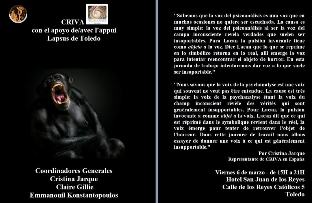 Le CRIVA rencontre Lapsus de Toledo à Tolède sur La voix, pulsion invocante, les 5 et 6 mars.